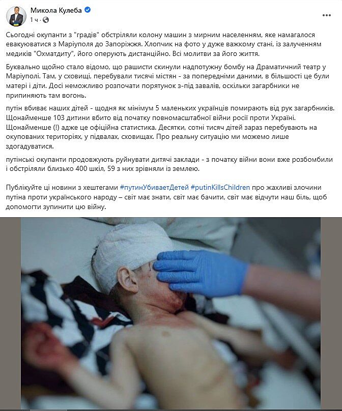 Хто там писав про ’хароших рускіх’ і ’не винні, що цар так вчинив’? А з цією дитиною і сотнями інших дітей це путін своїми руками зробив?