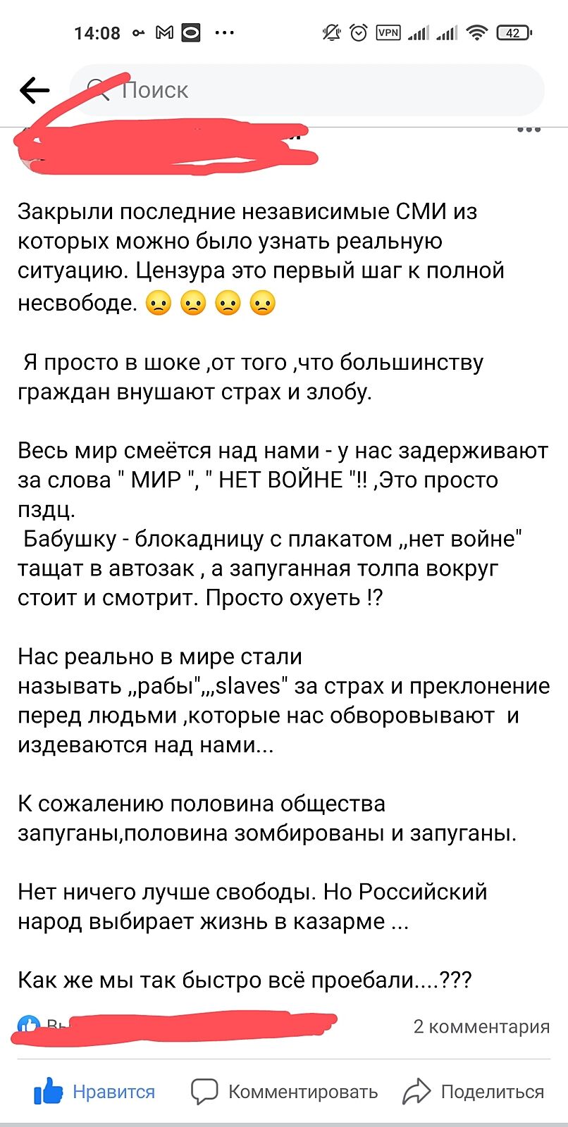 Я писала посты в сети, комментировала. К нам ночью приходила полиция с предупреждением. Стали писать разные мрази в личку гадости.