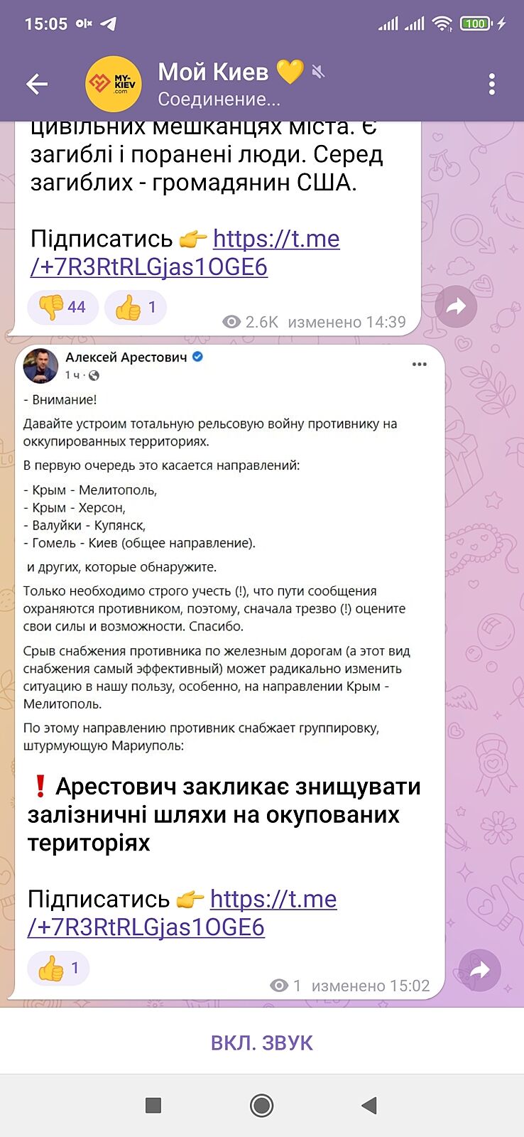 Арестович просит максимально раскурочить ж/д пути ,которые ведут из Крыма к нам.