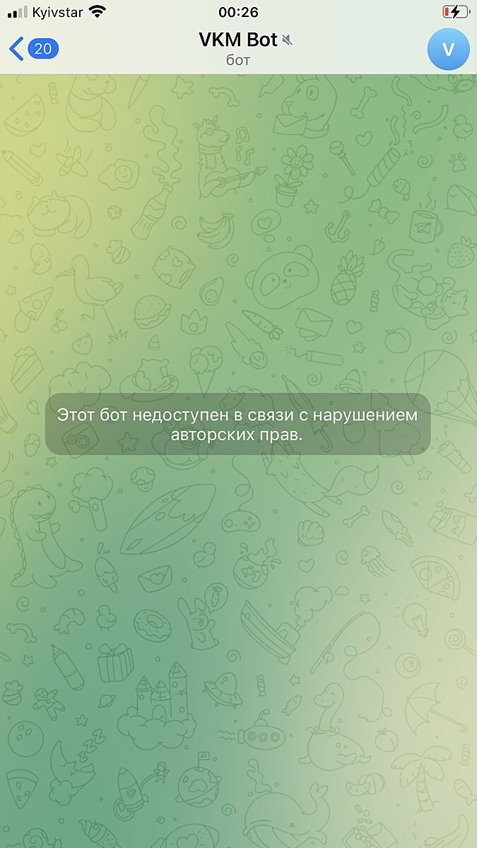 Раньше искала и слушала музыку через бот в телеграмме, теперь пишет такое. Кто-то подскажет,как это исправить? Буду благодарна