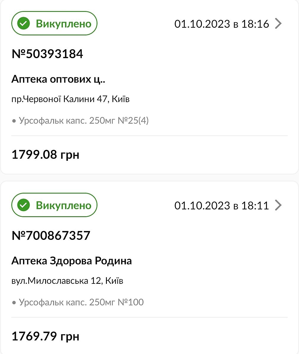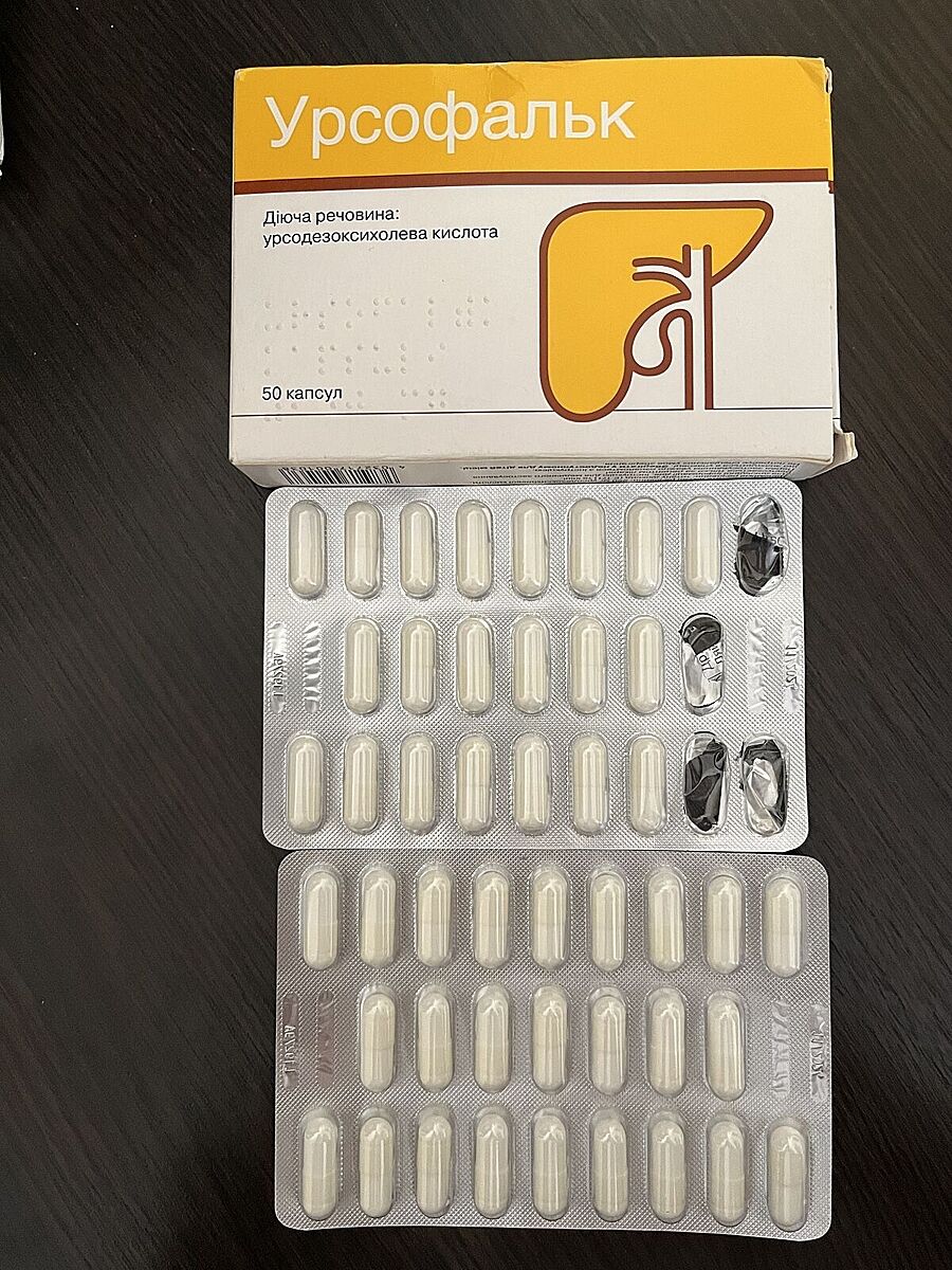 3. Урсофальк 250 мг - срок до 11.2024- упаковка 50 капсул минус 4 капсулы. - 650 грн.