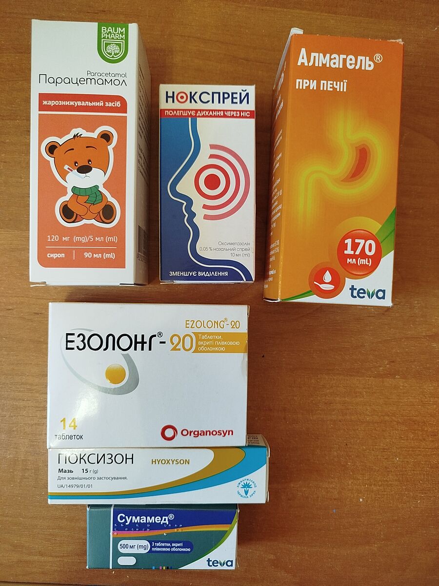 Парацетамол новий-50 грн, нокспрей новий 80 грн, Алмагель новий 90 грн. Езолонг 12 табл з 14 -80 грн. Сумамед 500, нові 340 грн. Гіоксизон раз в використанні 80 грн. Строки всі в нормі. Укрпошта відправка є