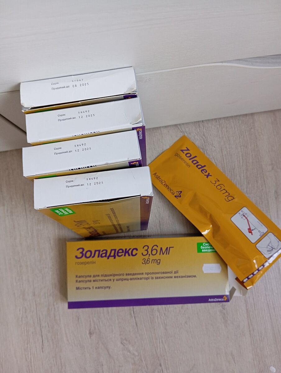 Золадекс капсули для п/ш. введення пролонгованої дії по 3.6 мг №1 у шпр.-аплік. В наявності 5 шт. Терміни зберігання до 08.2025 та 12.2025. Умови зберігання дотримуються. Ціна за 5 шт. 9000 грн. (або за 1 шт. 2000 грн.). Продажа в зв´язку з відміною лікування. М. Київ, 0663828140.