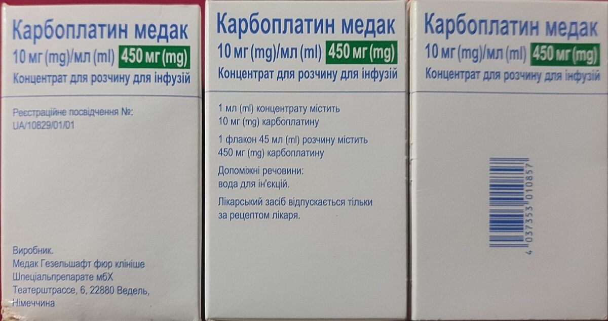 Карбоплатин Медак концентрат для р-ну д/інф. 10 мг/мл по 450 мл №3 у флак.
