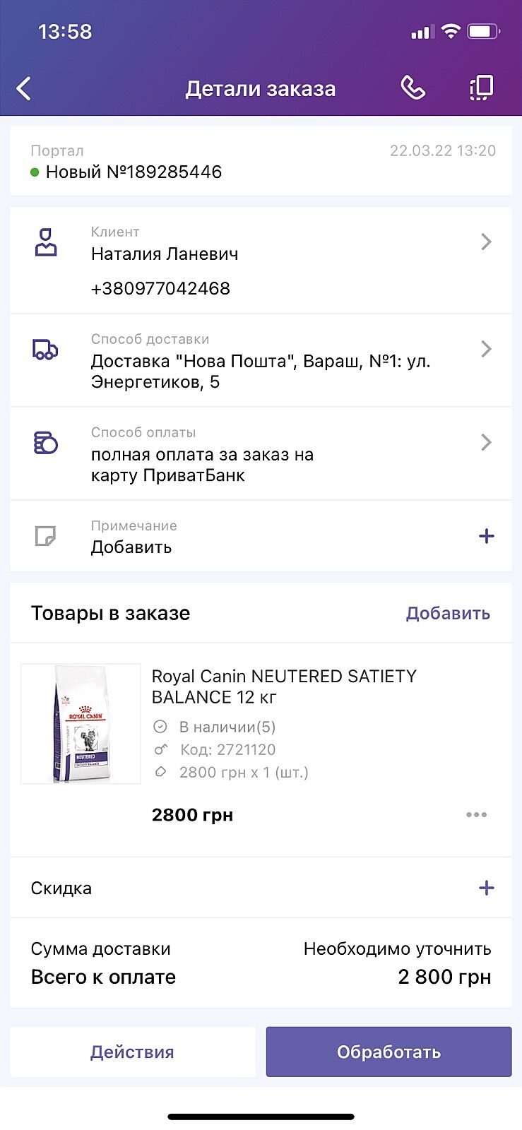 Спасибо вам огромное! Сегодня уже получила посылку с кормом!