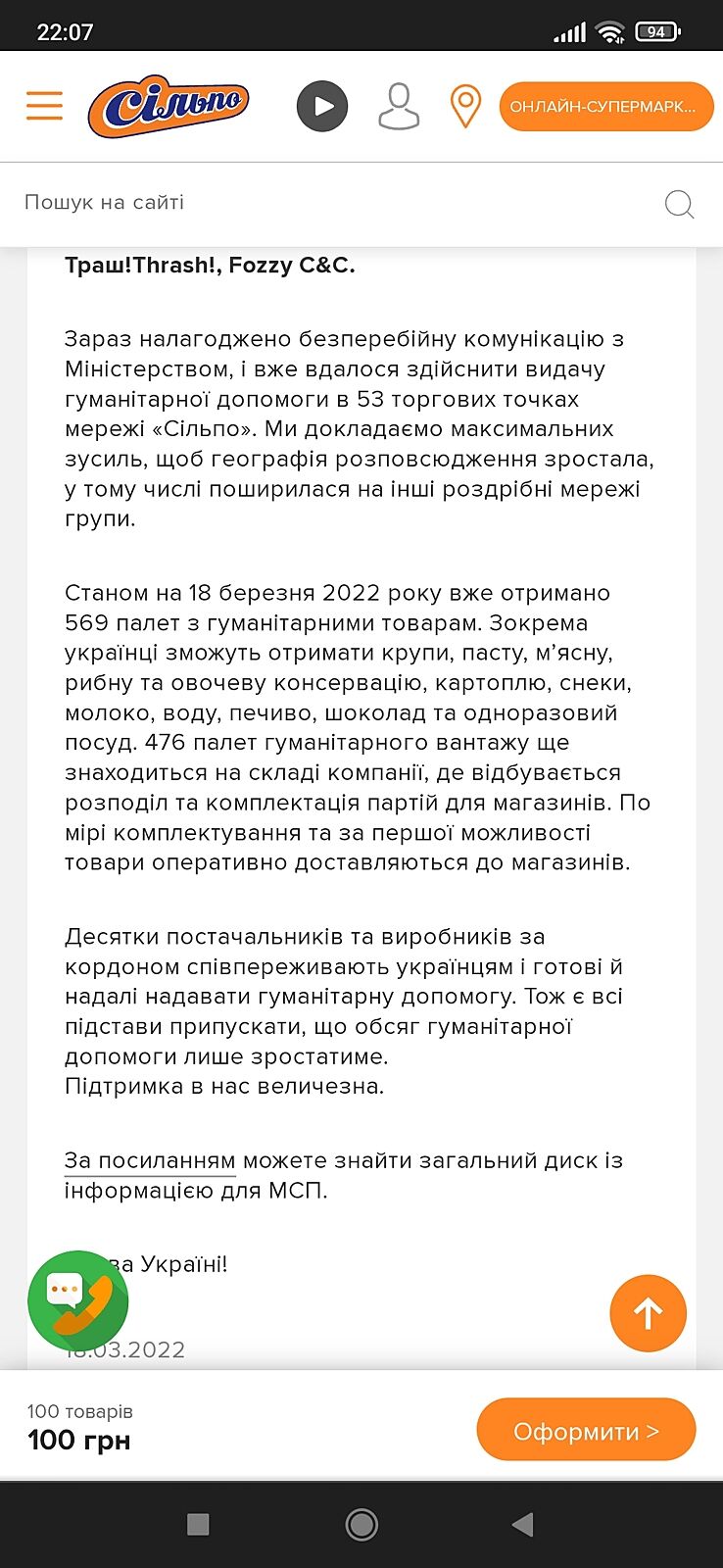 На сайте Сильпо опубликовано сколько гуманитарки они получили. Интересно, кто-то получил что-то из этого списка?
