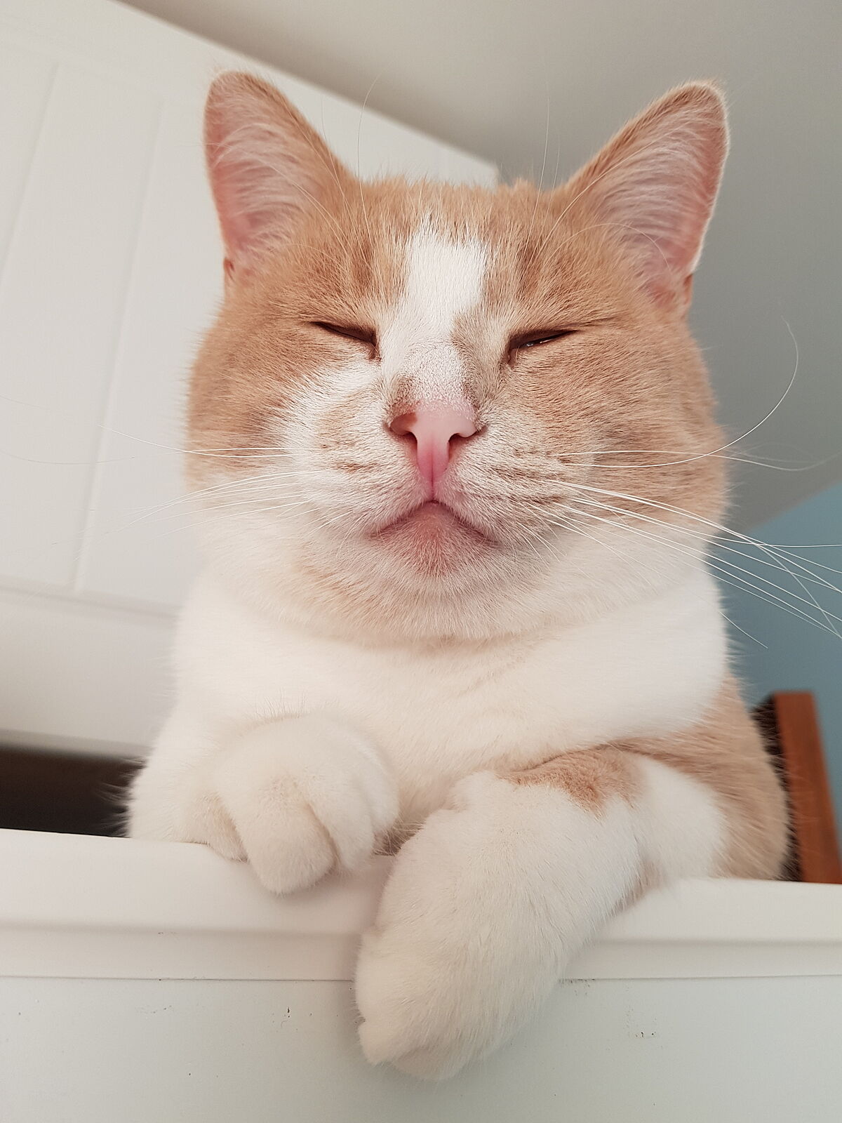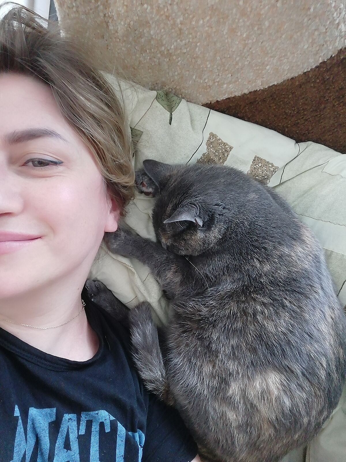 На цьому фото перший поцілунок через 2 тижні спільного перебування, українська кицюня жаліє пухнасту, бо щойно принесли з клініки після стерилізації.