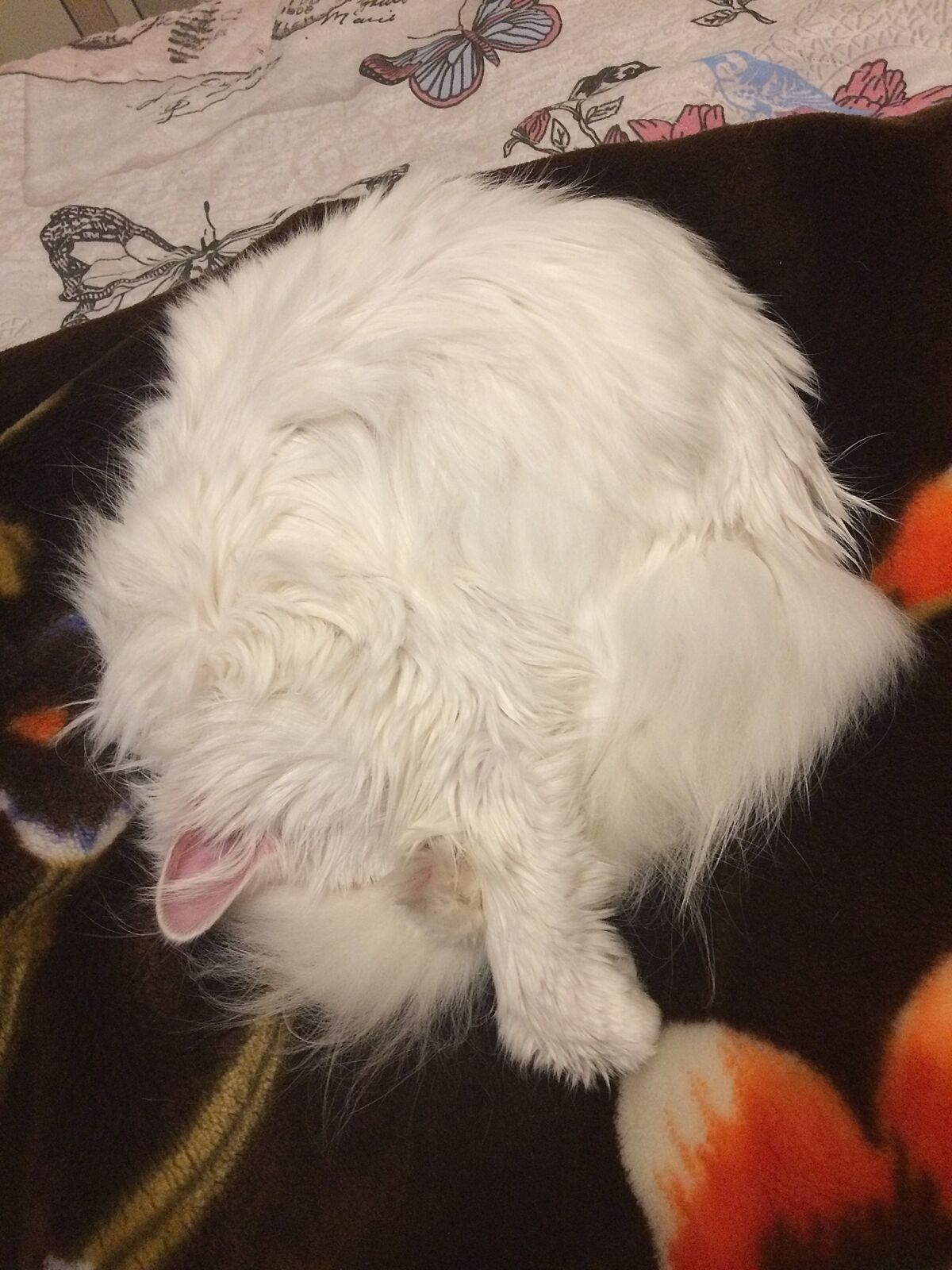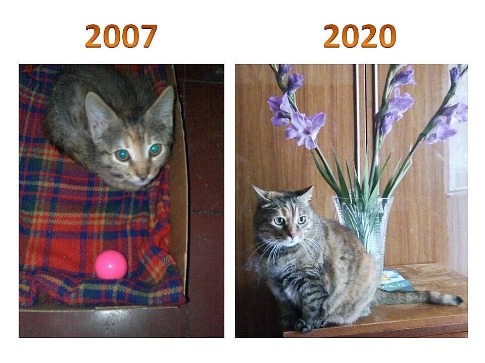 Пухнаста це іспанська молода киця, а інша наша українська киця віком 8 років, їхала 3 тис км дві з половиною доби, цього року мала серйозну операцію, домашня, вулиці панічно боялась, ветеринар казав, що 80% не доїде живою, за деякий час до поїздки давали крапельки, під час дороги заспокійливі таблетки, орала майже увесь час, мабуть, люди в автобусі довго будуть пам´ятати крикуху, але все супер, адаптації ніякої, апетит чудовий, ганяє трохи хазяйку)