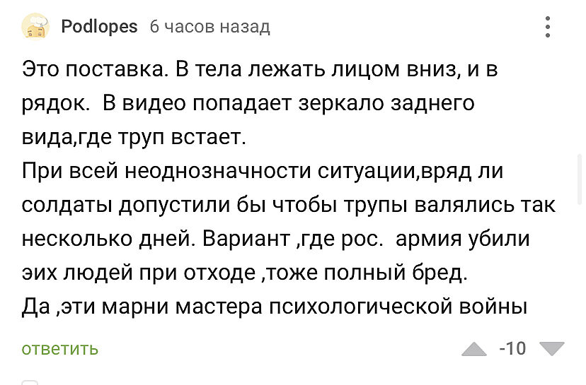 Для чого ця тема? Ви тільки зрозуміли що кацапи нелюди? Чи ви сподівались що вони прозріють? Я не розумію людей, які читають рос.пабліки і комменти. Це нагадує садомазохізм. Бо я б таке не читала. Якщо трапляються москалі десь, посилаю в напрямку расєйського корабля.