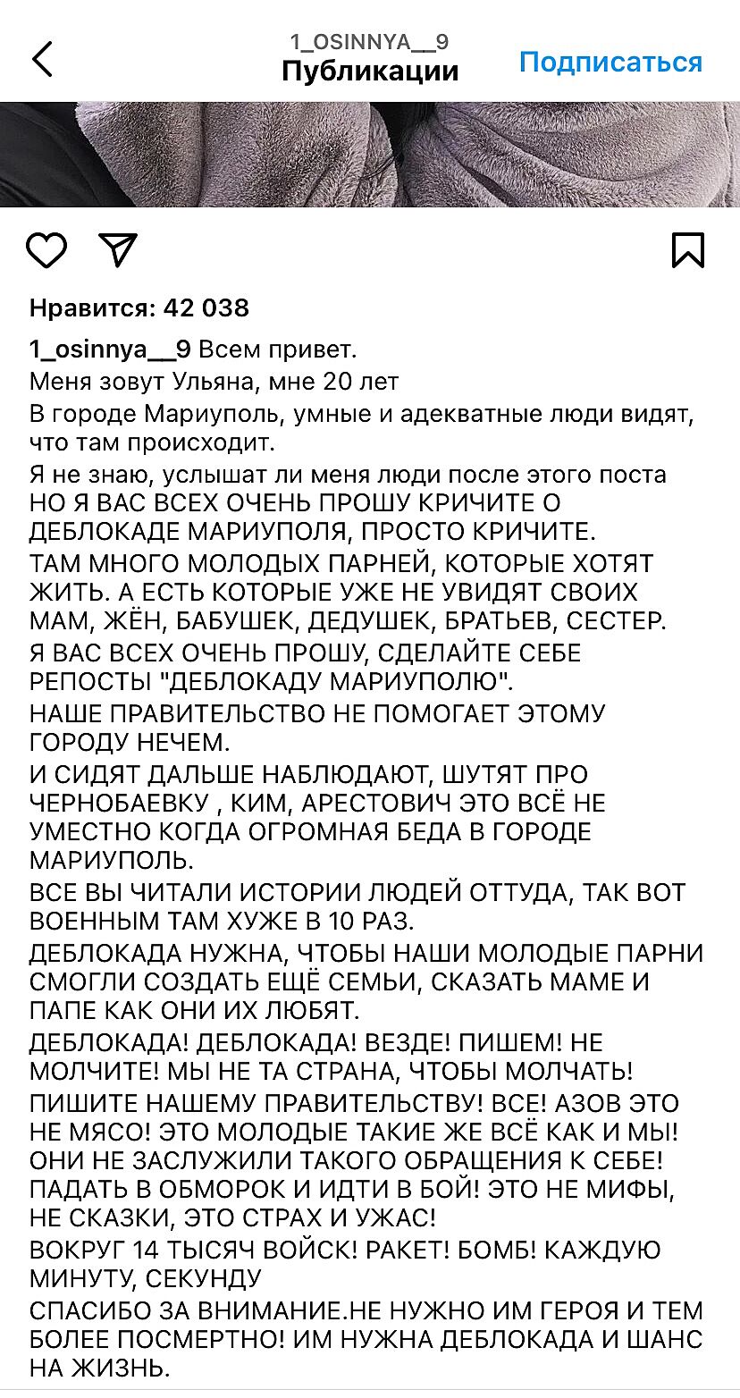Спросите, у нее может кто в Мариуполе, Буче пострадал, или муж воюет или брат. Сомневаюсь. Сидят такие все добрые, шлют лучики добра. Рассказывая, какие все агрессивные. Поучая чужими постами из инета. Сравнили Израиль защищенный, и Украину брошенную на произвол.