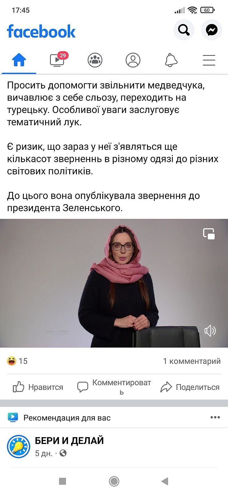 Вона вже й до ердогана відеозвернення записала. Та її послухати, украіна - країна терористів. І ні слова про війну. За життя чоловіка вона бачите хвилюється, а скільки тут людей, дітей маленьких росіяни вбили. Лицемірка.