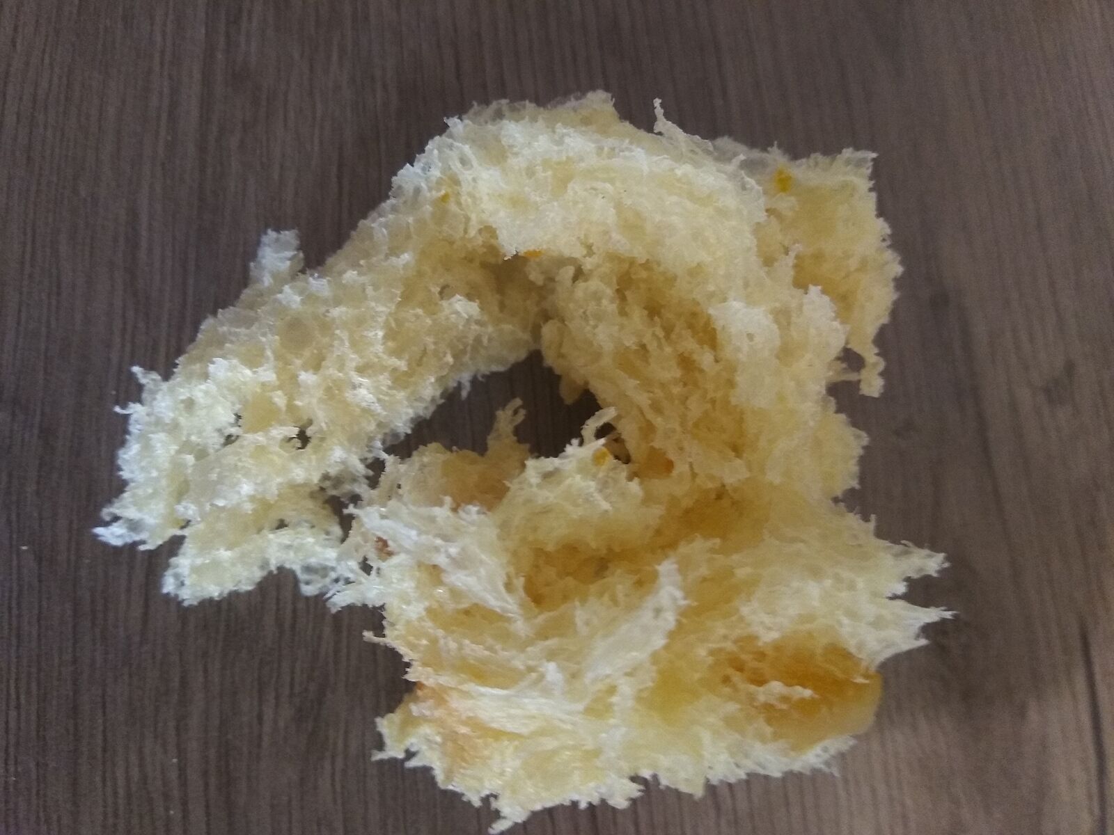 Будь ласка, скрутіть бублик із любої випічки, так як на першому фото і покажіть, що у Вас вийде, тоді далі поговоримо, бо щось дивно таке чути від людини, що працювала в пекарні. Як може бути дріжжове тісто не пористим? Звичайно воно має пори, що не відміняє розділення на волокна.