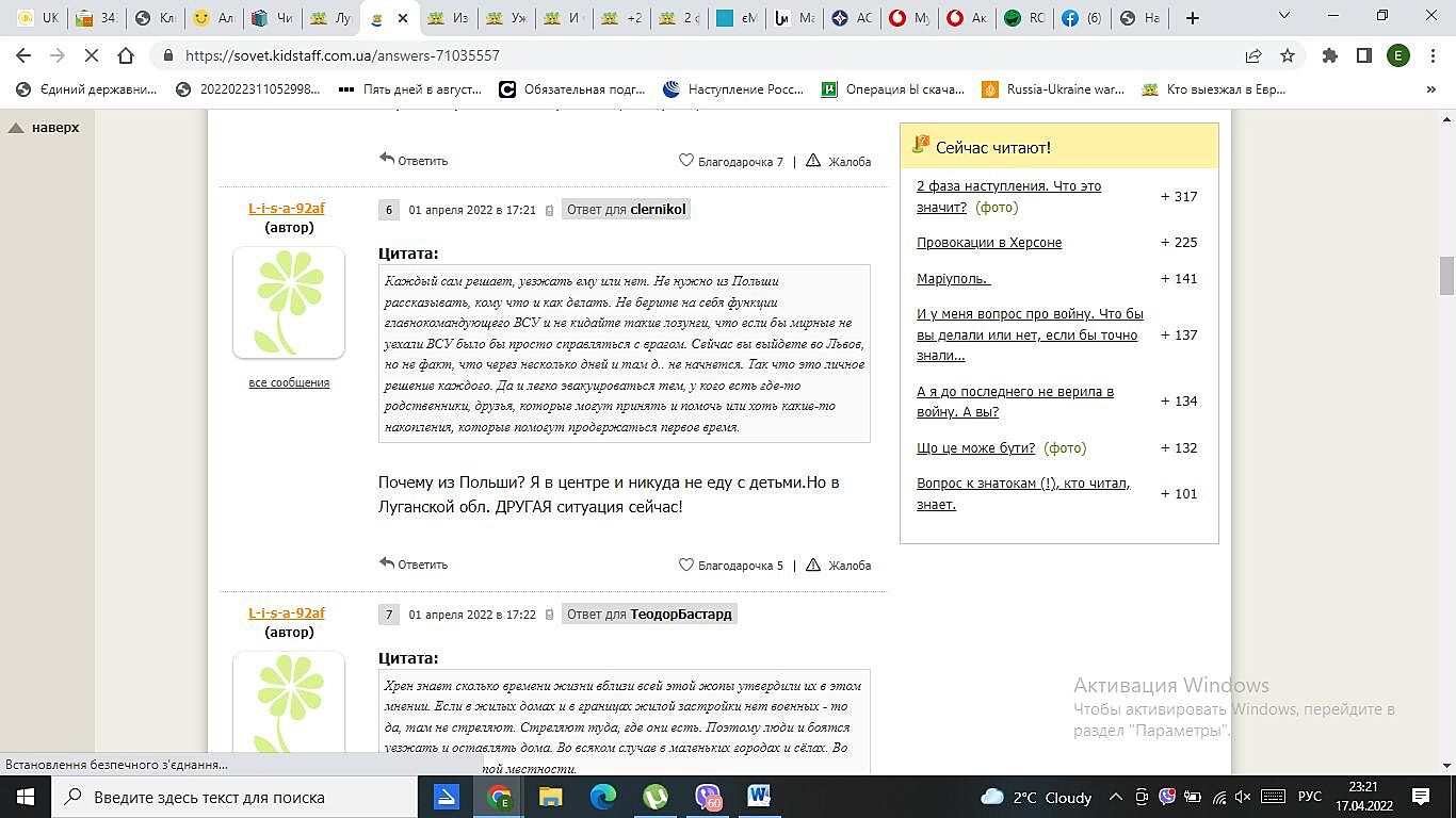 Это ж вы ’ киевлянка’ родом с Лисичанска или Северодонецка,которая в моей теме про эвакуацию с Луганской области вещала о том,что выехать невозможно?Хотя я вам там прямо предлагала и телефоны волонтеров,которые именно в тот момент были в этом городе, и информацию об официальной эвакуации,организованной обладминистрацией!