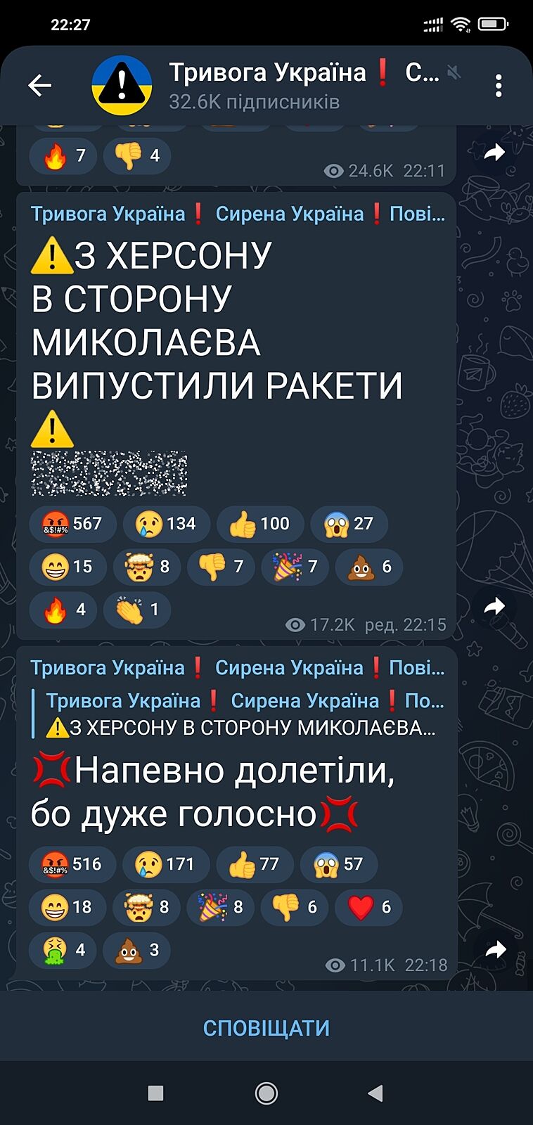 Девочки в тг написали они с Херсона по Николаеву ракетами