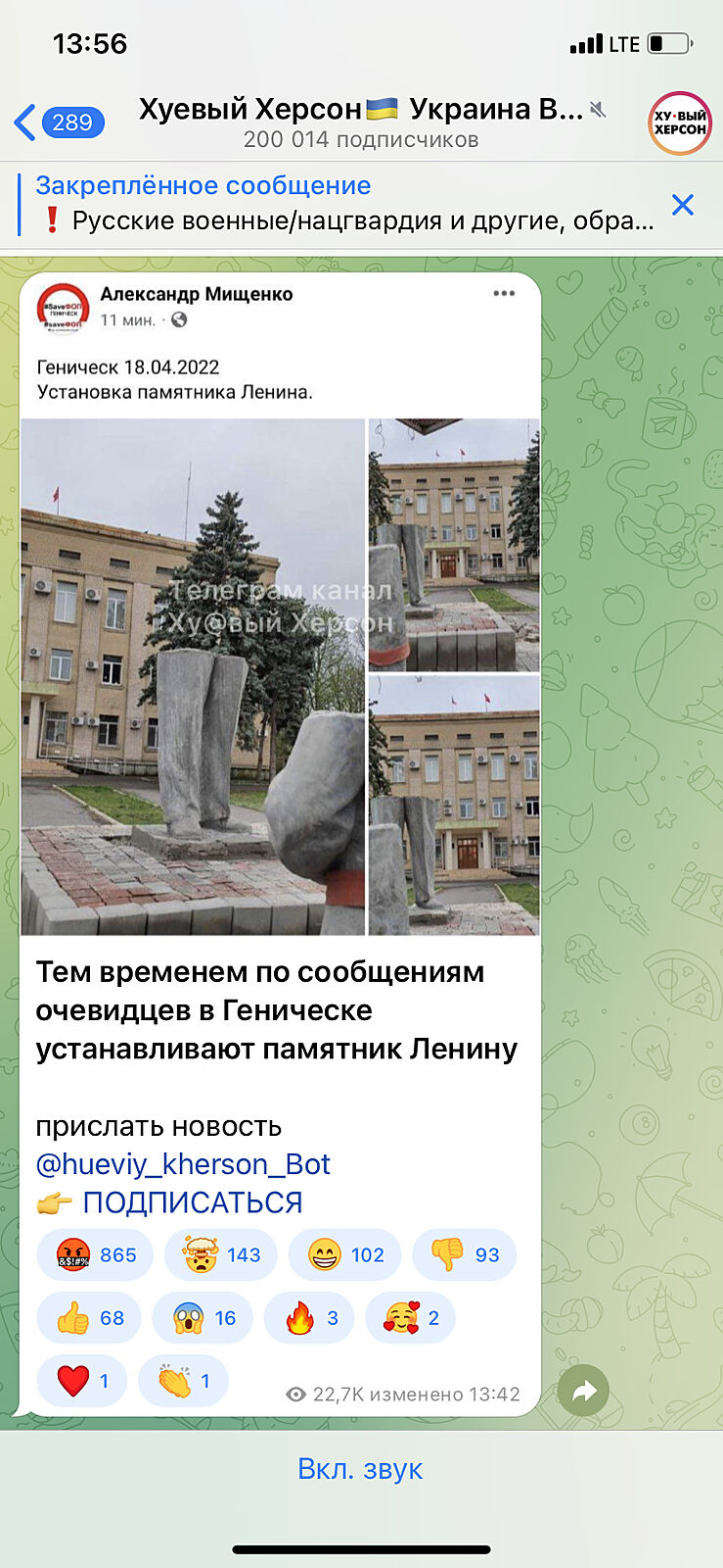 Сегодня в Херсонской области, рашисты установили памятник Ленину. Не знаю, что хотели этим показать, но насколько знаю, у них в планах возрождение СССР. Непонятно только, где они откопали этот памятник