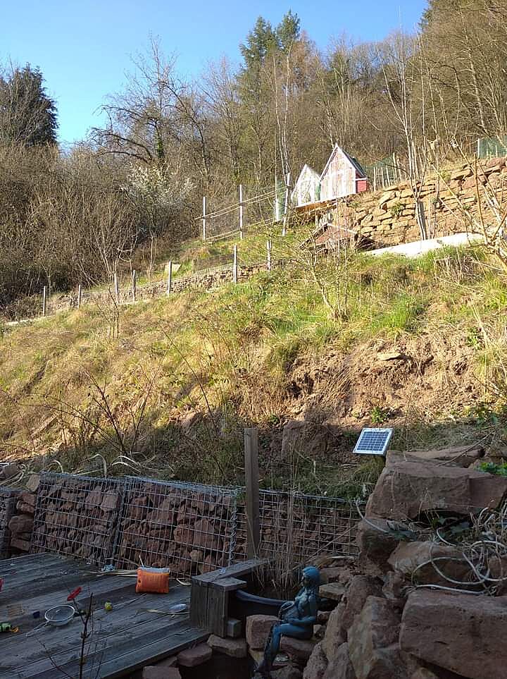 Живуть вони в будиночках нагорі. Чоловіка вже підготувала що й йому доведеться майструвати такі курятники