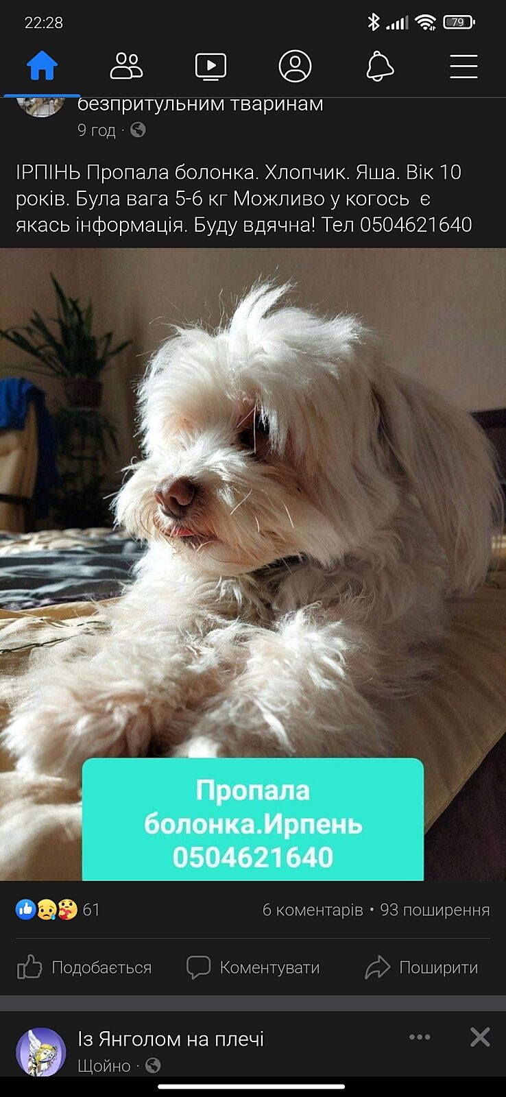 Ми теж з тих країв собаку забрали. Ну вірніше вона вийшла в Пущу орієнтовно з Гостомеля. Десь місяць микалася.