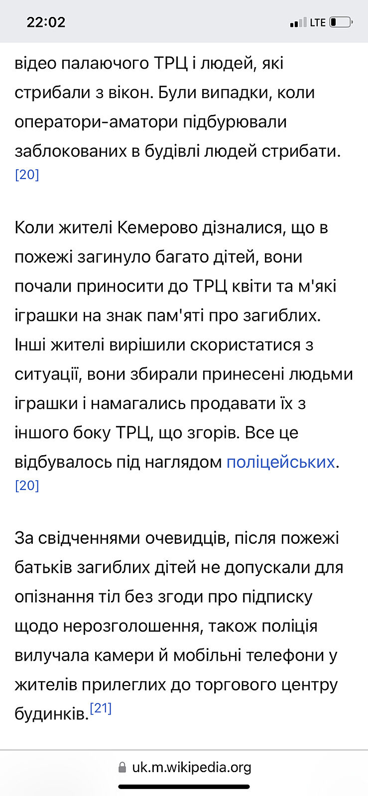Вчора читала про пожежу в «Зімнєй вишнє»