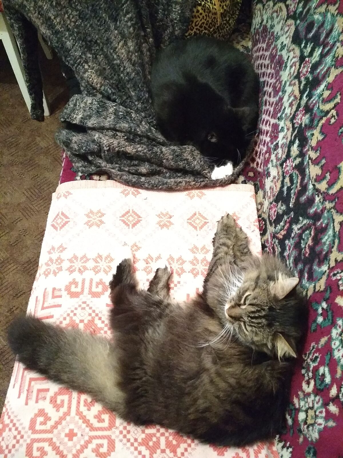 У них мозгов нима, притрутся, но все равно, будут развлекаться потасовками, в основном ночью). А потом спать на одном диване