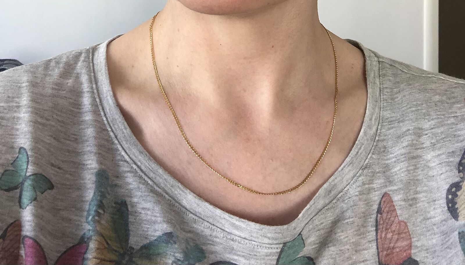 Мне нравится, у меня ещё тоньше, я брала 40 см и малюсенький кулончик, чтобы в ямке лежал )
