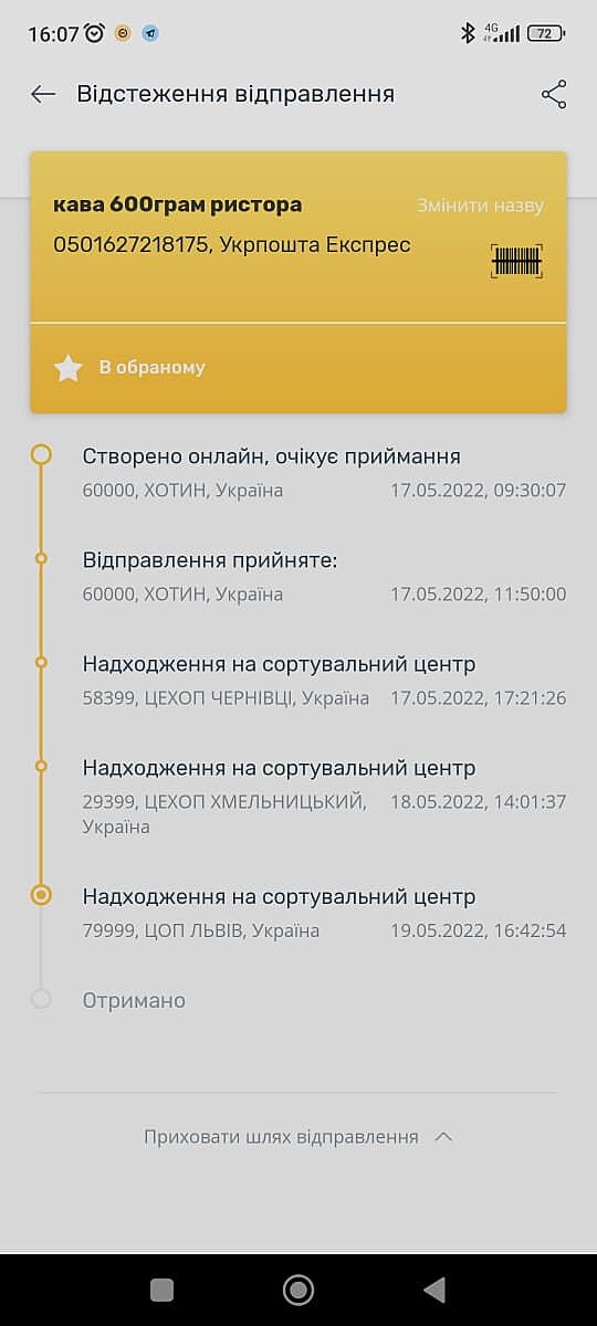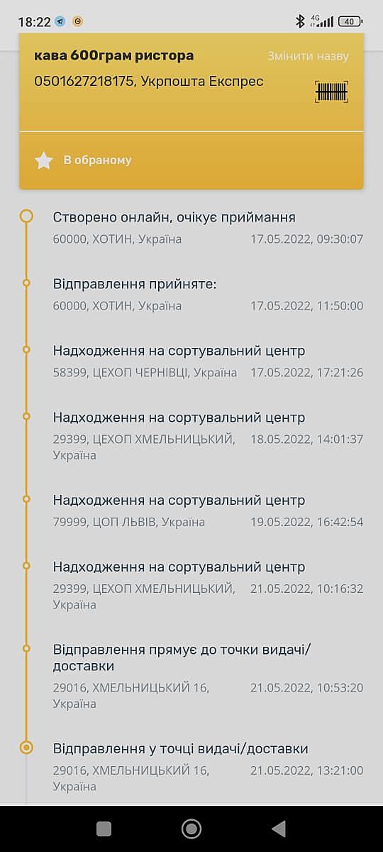 У меня тоже так, посылка Хотын - Хмельницкий, в среду приехала в Хмельницкий и вместо отделения доставки почему то уехало во Львов. Я в пятницу на горячую линию звонила, оформила заявку, в сб посылка прибыла в мой город. Какая то путаница у них видимо.