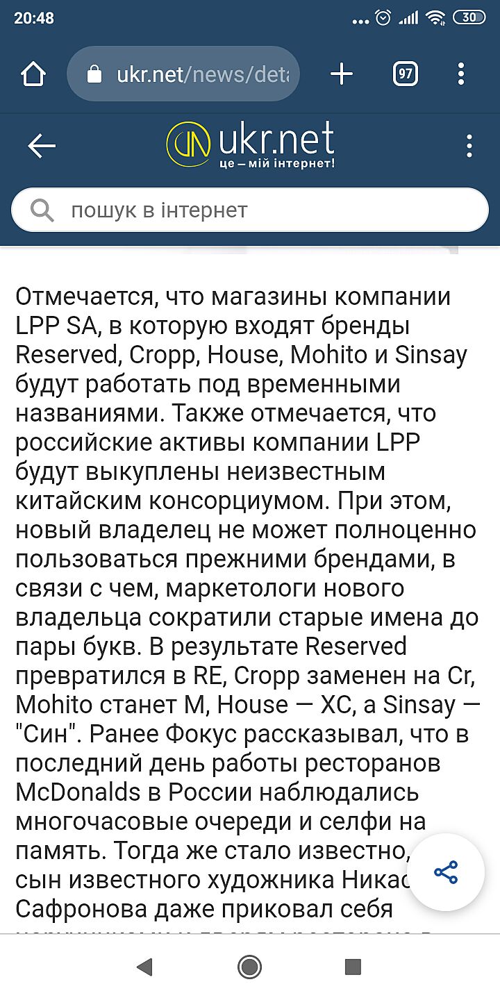 Не будет Мака в рф, сеть куплена и будет делать похожую продукцию. ’Похожая’ - это не мак, хоть , что они не пиши. Как и кропп с ресерведом. Сменятся название, доторгуется проданная бывшей фирмой одежда и завезут ’похожий китайский товар’. Сегодня об этом читала в рф новостях.