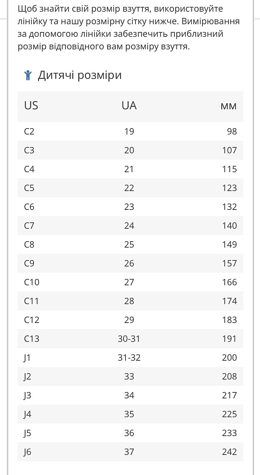 В таблице указана рекомендованая длина стопы. К примеру, у моего ребёнка сейчас 17,2 и я беру ему С11