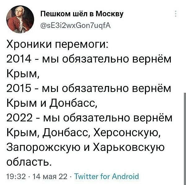 Ну взагалі-то їхній Кутузов Москву здав, але війну виграв. Та й Крим і Донбас ми не повертали через Мінські домовленості, які висіли каменем на шиї.
