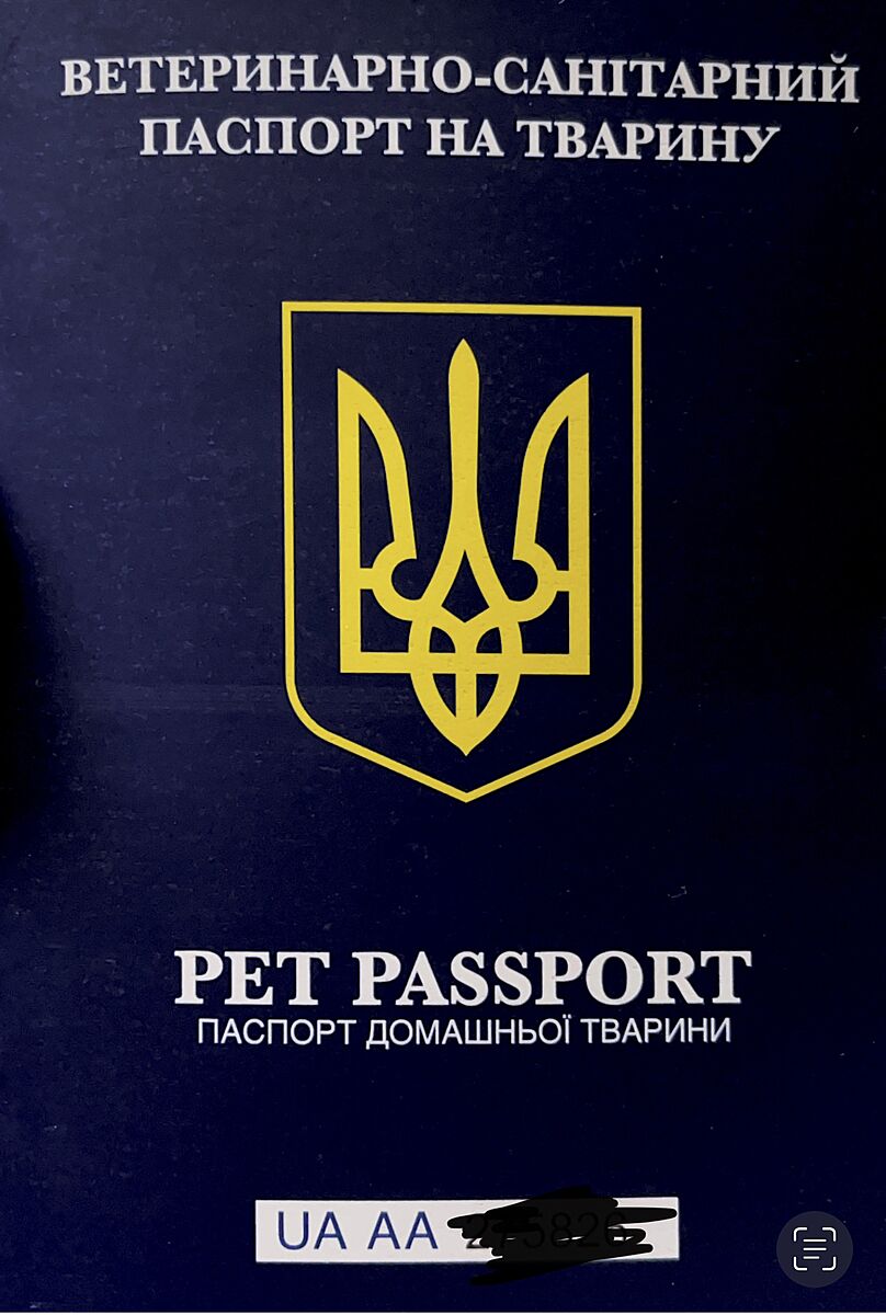 ➻ Ветеринарний паспорт держ. зразку з гербом України який має включати наступні процедури: чіпування; вакцинація від сказу; комплексна вакцинація; обробка від паразитів, включаючи echinococcus multilocularis; клінічний огляд.