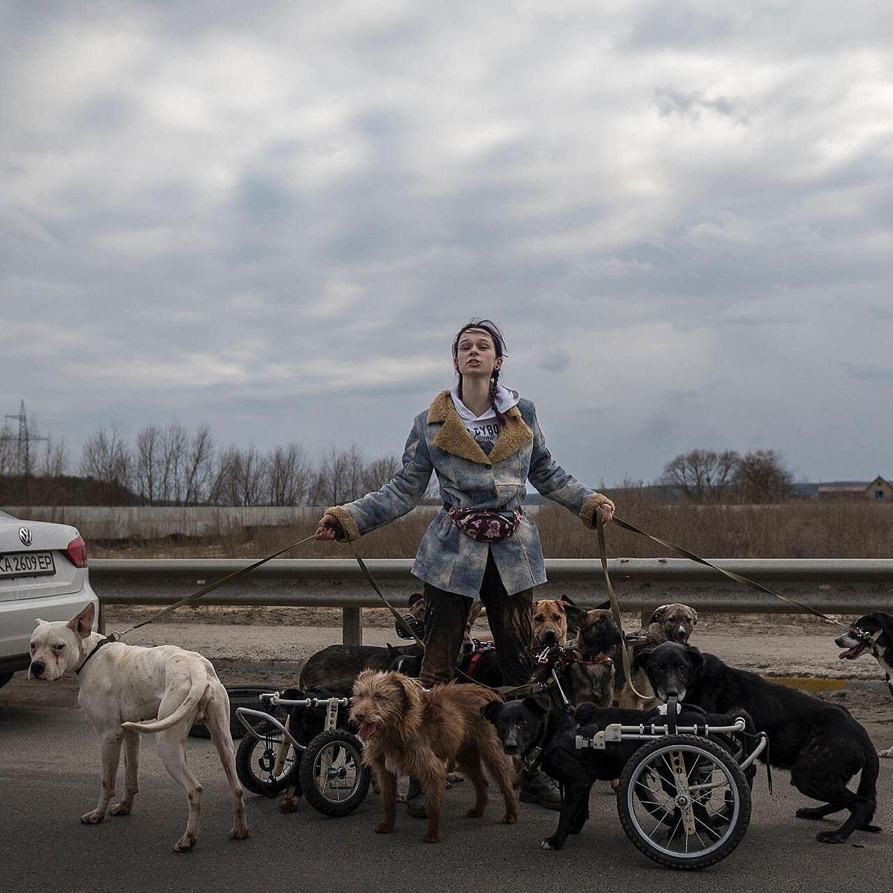 Помню статью о девушке,которая вывезла из Ирпеня собак-инвалидов.