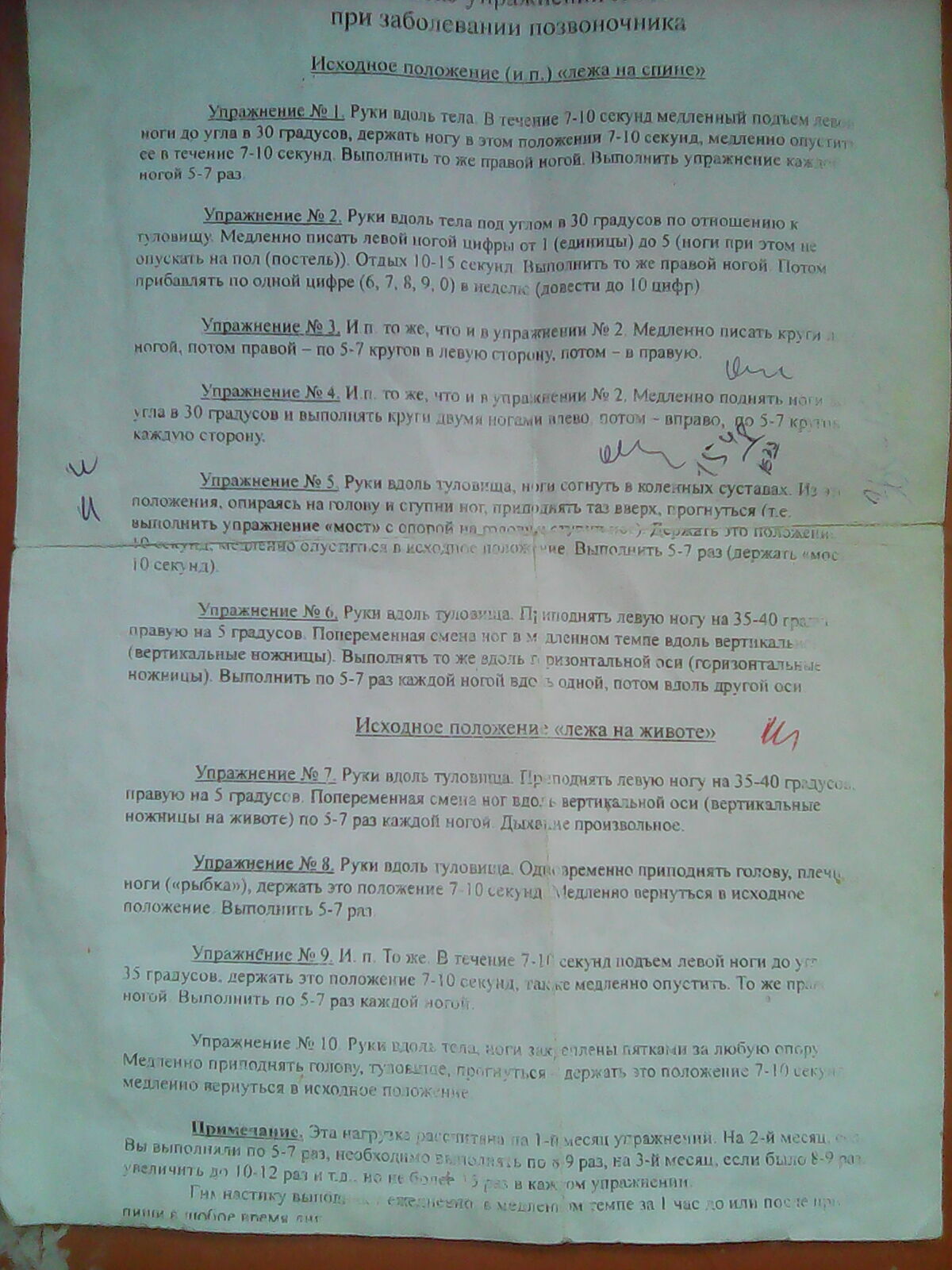 Да,мне эти упражнения и в Ситенко давали,и 4ой неотложке.Сначала делала часть упражнений с первого фото,потому что одна нога болела очень и от пола вообще не отрывалась.Это как раз для пояснично-крестцового