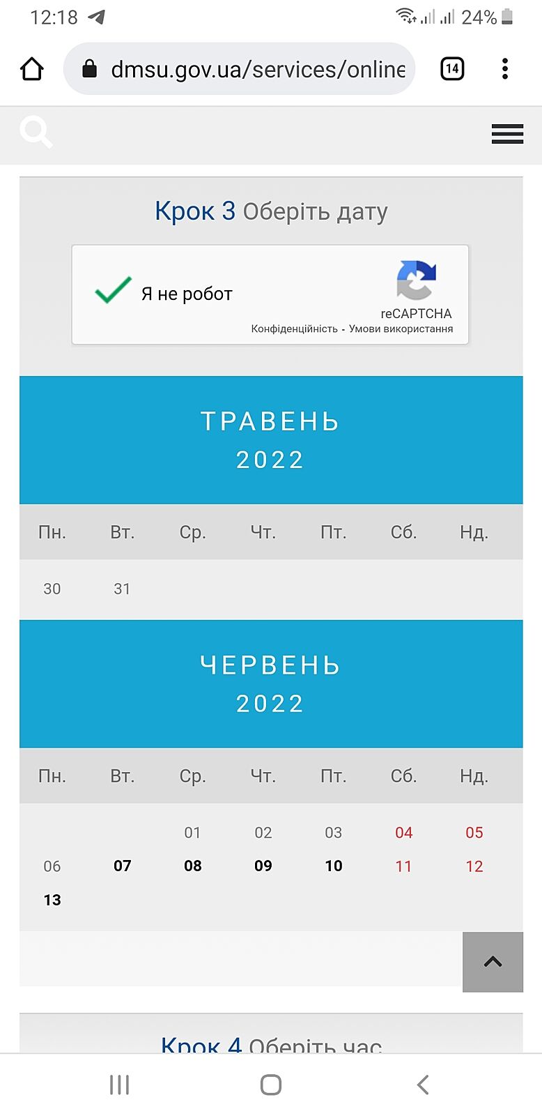 В ДП документ захожду з компа - нема вільних дати для реєстрації онлайн