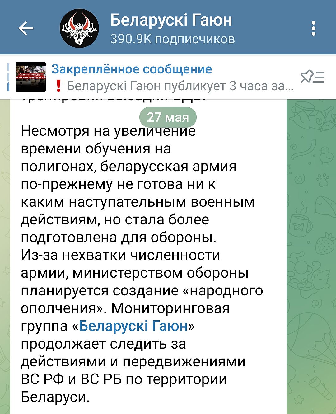 Останні дні проскакують пости паніки. Ніби як відписуються люди, яким військові сказали, що протягом тижня треба знов виїзджати. Хто пише 9-15 днів. Вже таких 4 повідомлення читала. Чесно кажучи, я не дуже вірю, та і розвідкв нічого такого не каже. Але, все ж, черв´ячок сумніву точить. Зруштую, ждать, що офіційно попередять не варто, бо в нас досвід вже є. У сусідній темі заскрінили пост Березовця в ТГ. Прикріплюю, може, хто не бачиі. Ну і Корбан на днях писав, що терміново треба укріплювати кордони. Наче більше панічних попереджень не було. Може, щось пропустила.
