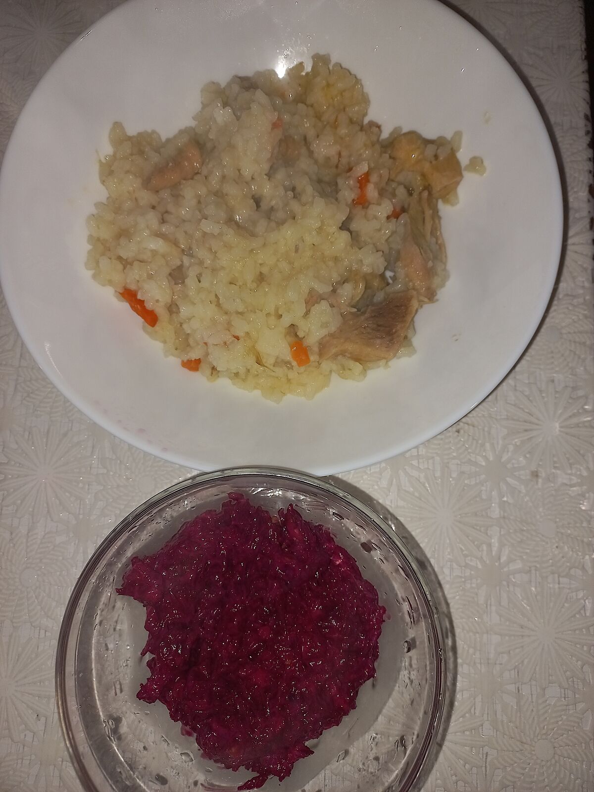 Ок ,только фоткала для себя не на показ,чтобы могла ориентироваться, поэтому фото чисто домашние :гречка с грудкой с зажаркой в сметане,капуста тушеная в томате и запеченая скумбрия,плов без приправ с курицей и вареный буряк с чесноком и сметаной,каша с говядиной и цветная капуста,булгур с мидиями