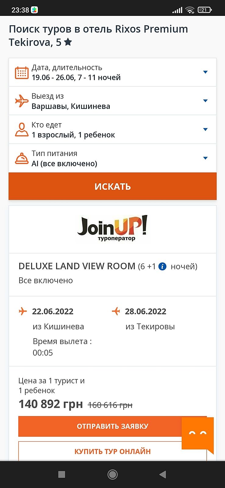 И вместо тысячи слов, очередной скрин от польского туи, где четко указано, что цена за тур и цены Джойн ап на этот же отель...