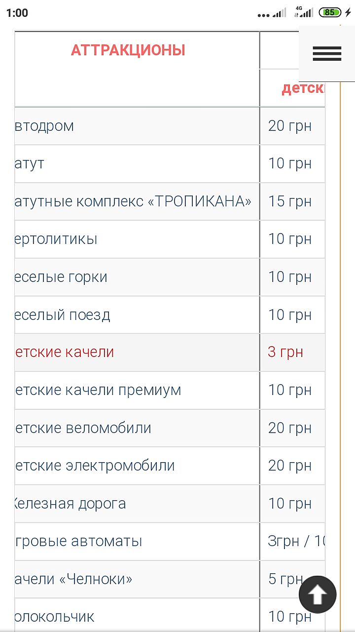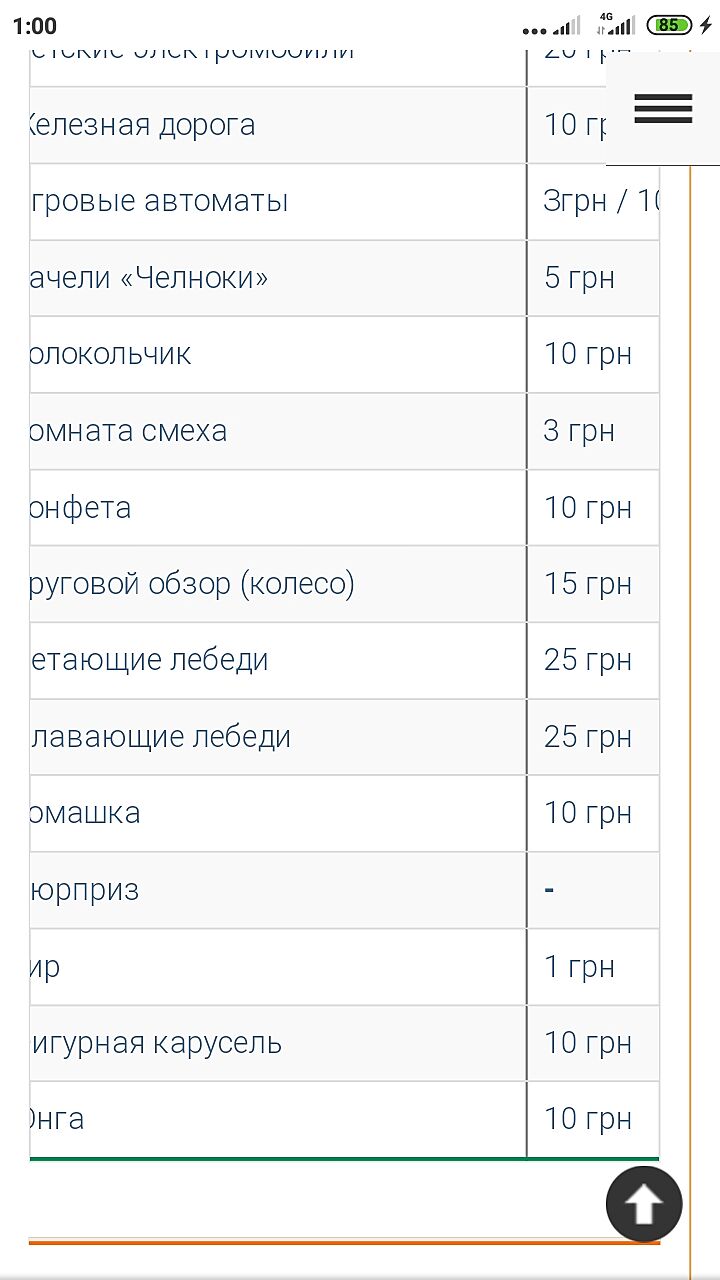 Ну там не супер пупер крутое,но знаете лучше чем у нас в Киеве, есть старые качели и привозные чуть дороже, даже комната смеха с зеркалами,там как то всё ухожено,покрашено и намного красивее чем у нас в Партизанской славы.цены прошлого года 5-10-15-20 гривен,там кто то толи мер толи кто-то держит этот парк и старается для детей,там ещё батут был огроменный крутой,я такого в Киеве не видела,и для того батута сделан специально навес на железный колонах,он и от солнца и от дождя,много кафешек и не с заоблачными ценами.морожено ,вата но дёшево,а у нас рубят цены.