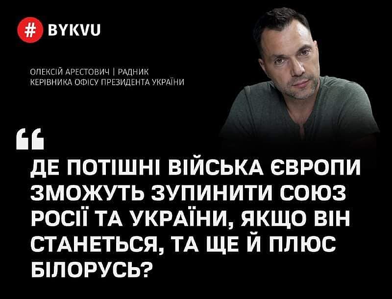 Ну...він же радник першої особи.. Якщо не знімає, значить все подобається.. А потім розказуватиме, що нам озброєння не дають. А тут Ар. -натякає, що це озброєння може бути повернуте проти даючих..А союзники дуже гарно зараз відслідковують, що несуть Арестович та Подоляк... (((.