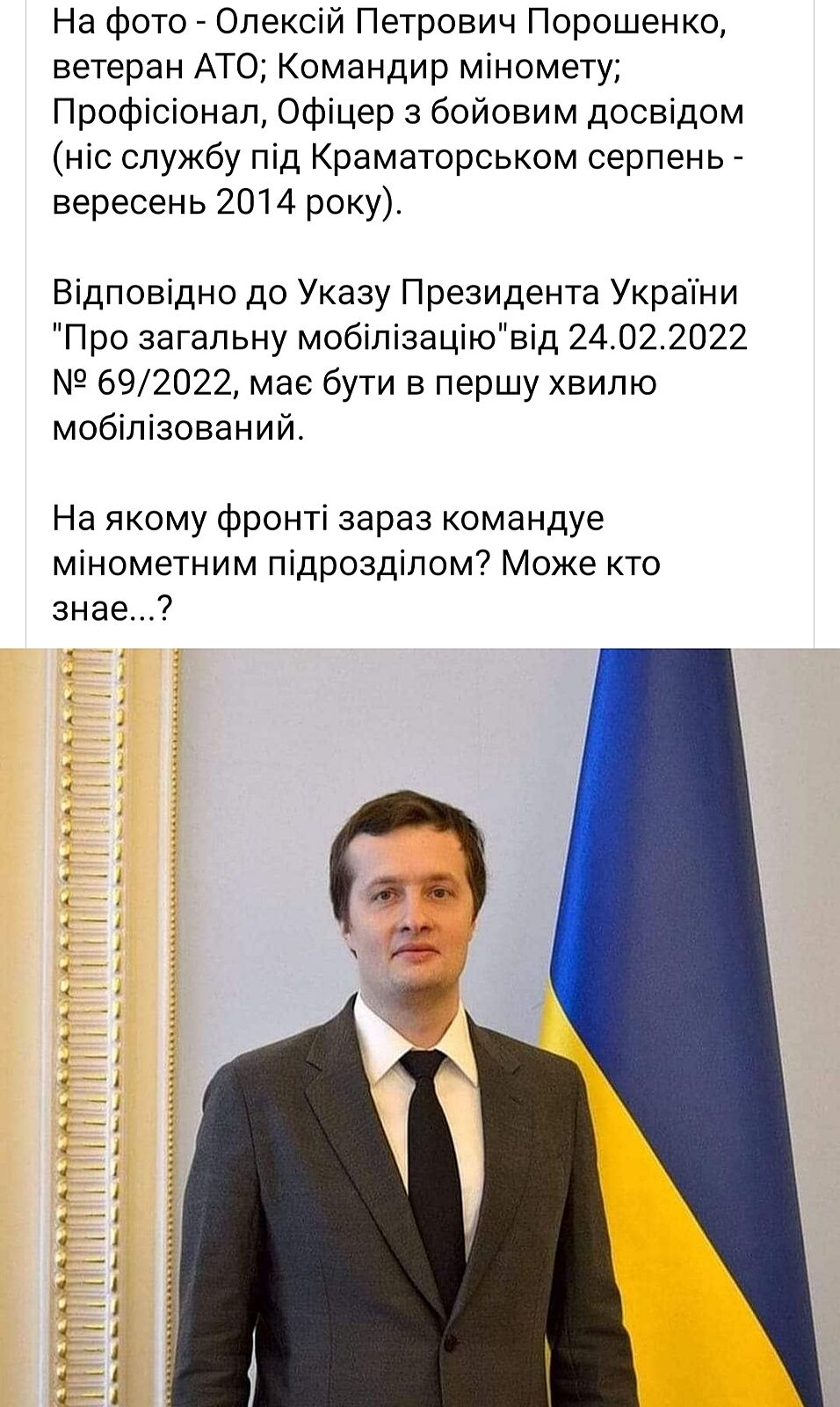 Ни один депутат, чиновник, олигарх, судья, прокурор не на передовой.