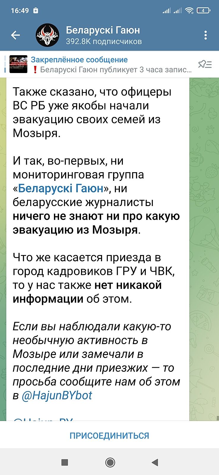 Если вы наблюдали какую-то необычную активность в Мозыре или замечали в последние дни приезжих — то просьба сообщите нам об этом в @HajunBYbot