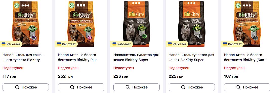 Берем других производителей - и ни один по качеству не сравнится с BioKitty. А по цене даже и дороже выходит. Мочу не комкуют - вообще, рассыпается мокрое, сильно воняет, расход из-за этого в 2-3 раза выше, чем был с BioKitty.