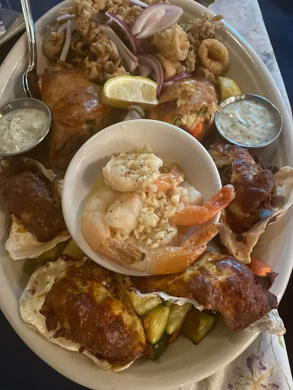 Сыр фри, блинчики с сёмгой, жульен. Всего по чуть-чуть попробовала