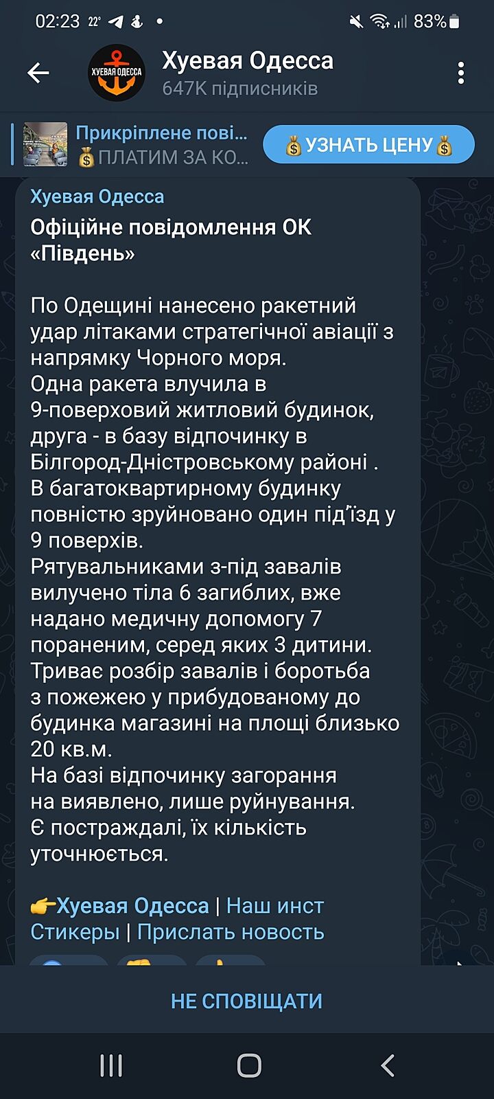 Прилет в курортный поселок Сергеевка в Одесской области. Много жертв. Милая маленькая Сергеевка ... За что ? Не могла уснуть , так тревожно и вот . Пусть будут прокляты русофашсты , все до одного , до седьмого колена ! Ненавижу!