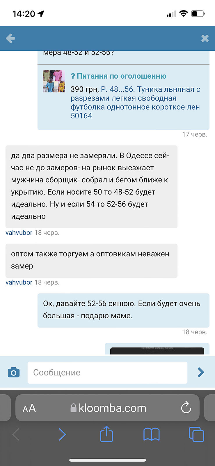 В цей період з Одеси отримала ще 3 посилки, продавці відповідали на додаткові питання і все було ввічливо, не дивлячись на прильоти. Хто не може працювати в зв’язку із війною, прильотами і т.Д., то просто не працює, а тут хоче зароблять гроші, але щоб лишній раз не напрягали.