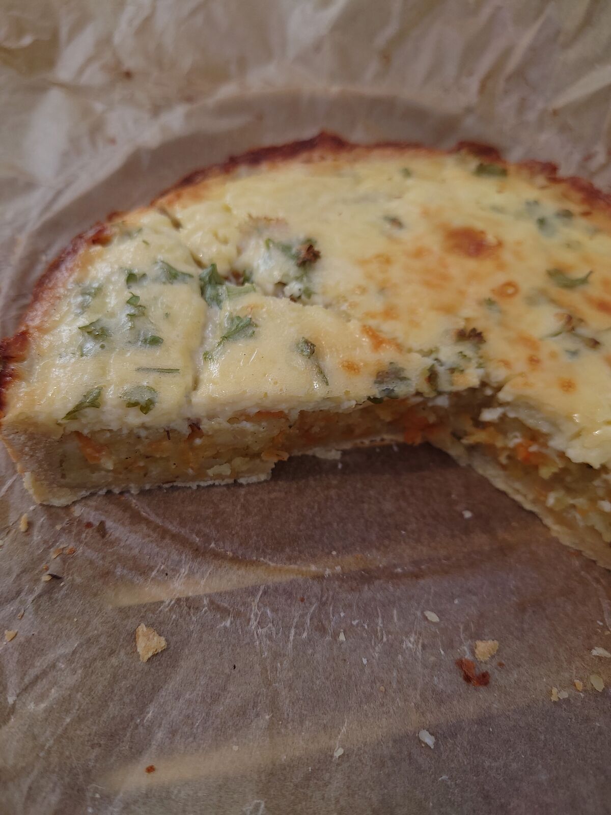 И одновременно с ней не знаю как назвать- запеканка что ли из кабачков, филе, моркови и сливок