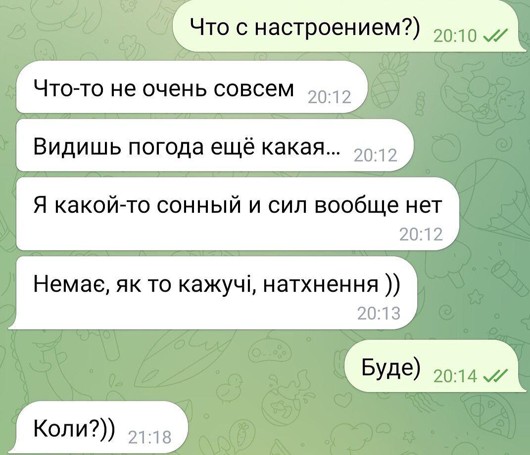 Познайомились на сайті знайомств, перейшли до спілкування в телезі. Часто в нього не має настрою, ось сьогодні наприклад. Як на це реагувати? Він хоче щоб я його жаліла, не розумію