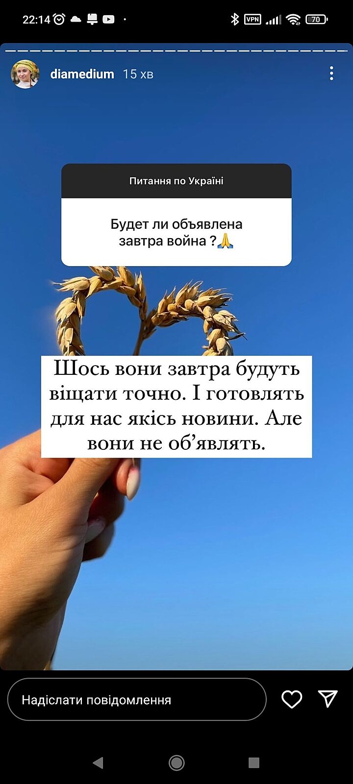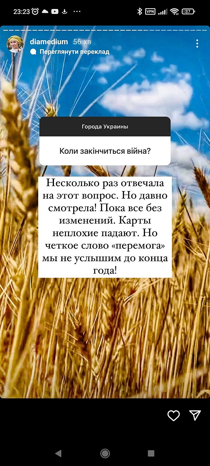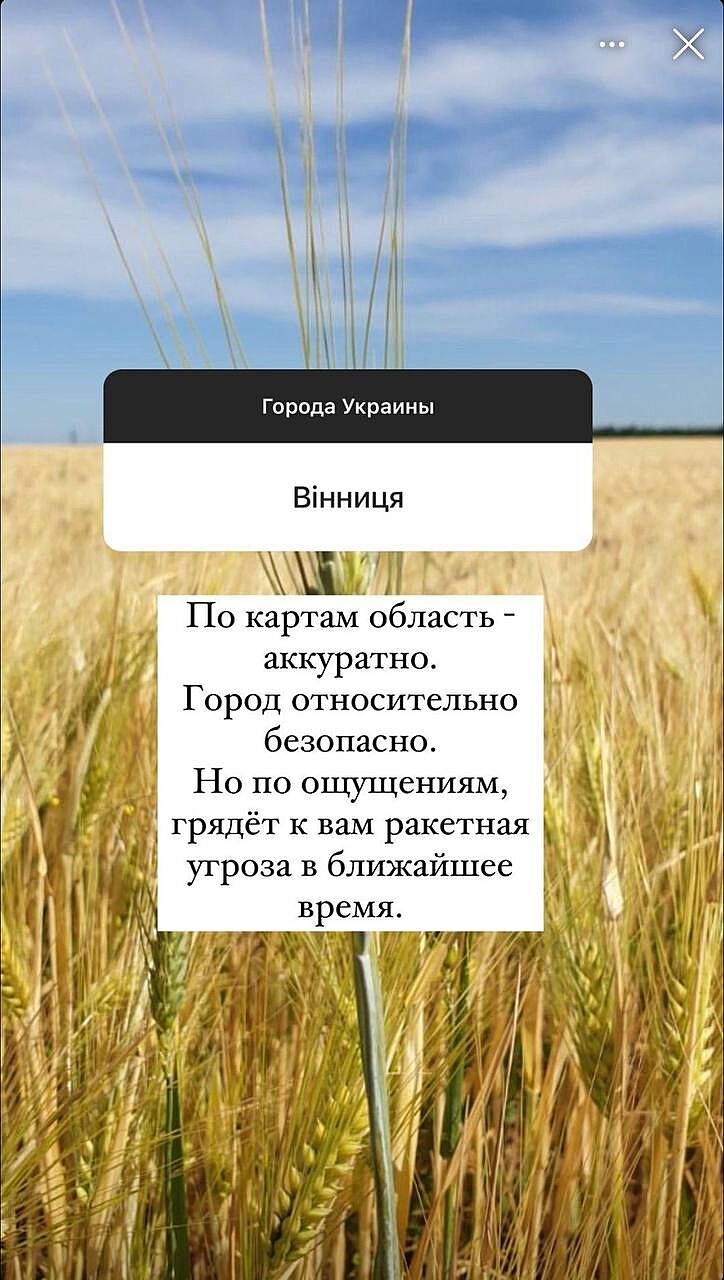 Она делает расклады по неделям на все города. На эту неделю прогноз для Винницы звучал так: ’Навіть якщо будуть прильоти, хоча малий процент цього, то буде без жертв, хочу так думати. Взагалі непогана неділя для Вінниці’.