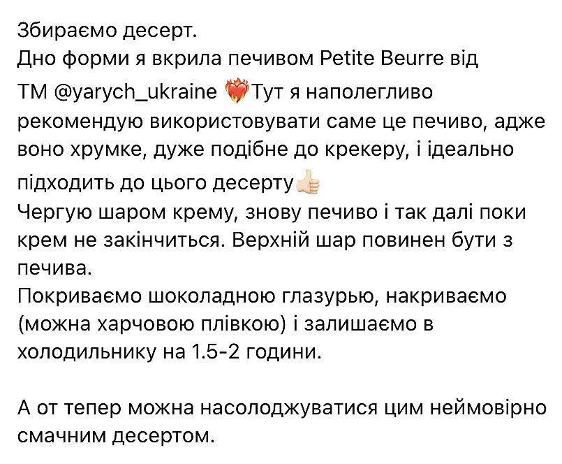 Я робила десерт без випічки з крекера, сподобався. Хочу заливний пиріг з малиною та галету приготувати найближчим часом.