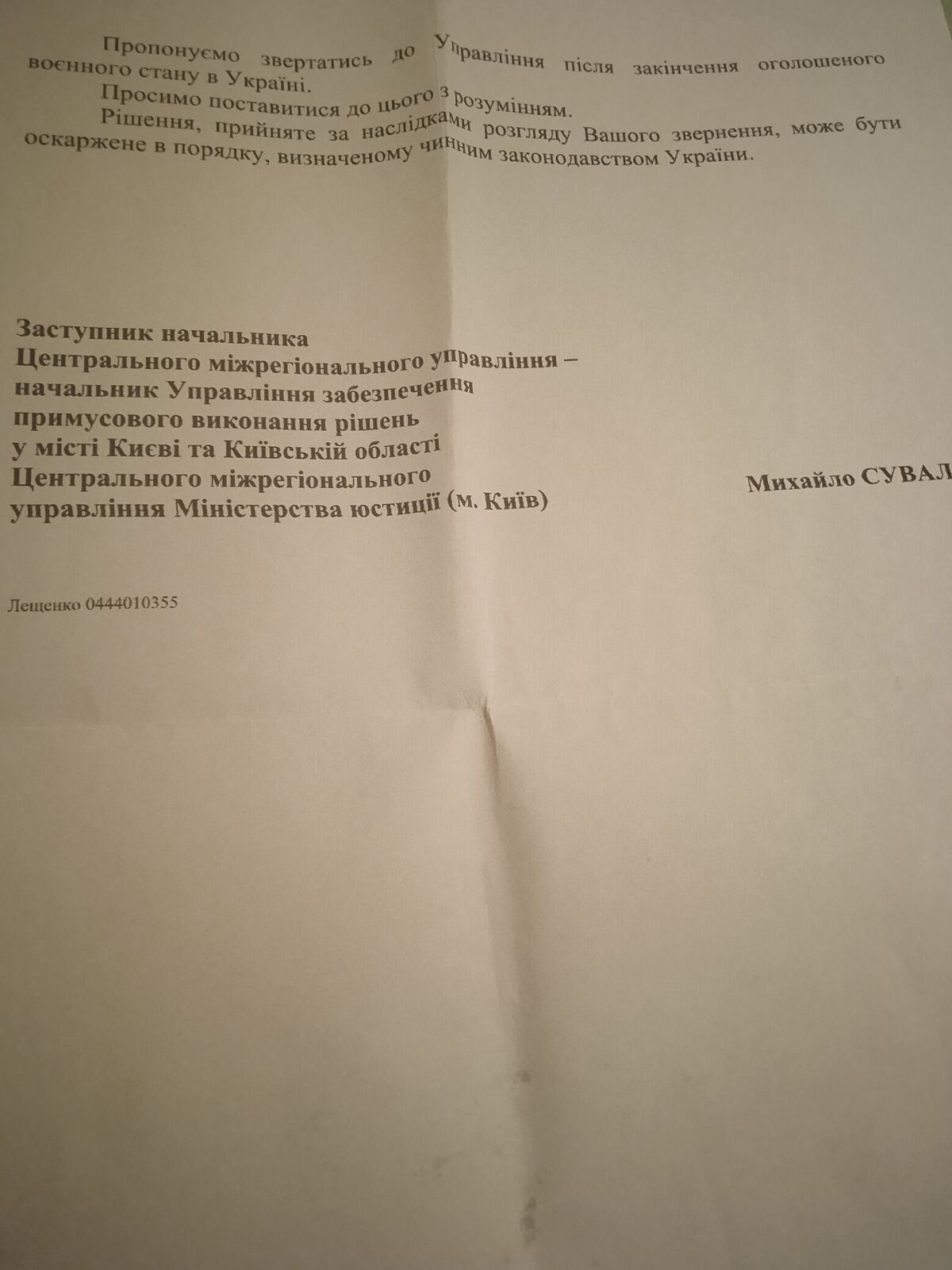 БМ злостный должник,сумма долга уже более 150 тыс.С января ни копейки на ребенка не дал.На предыдущую жалобу на бездействие начальника районной исполнительной службы пришла отписка,чтобы обращалась ,когда ВП закончится.Случайно узнала,что в ВСУ он сейчас.Исполнительная и до ВП через пень-колоду работала,как и при короне,а сейчас вообще расслабились.Я не знаю,что и делать.Опять жалобу подавать?И снова месяц ждать очередную отписку.