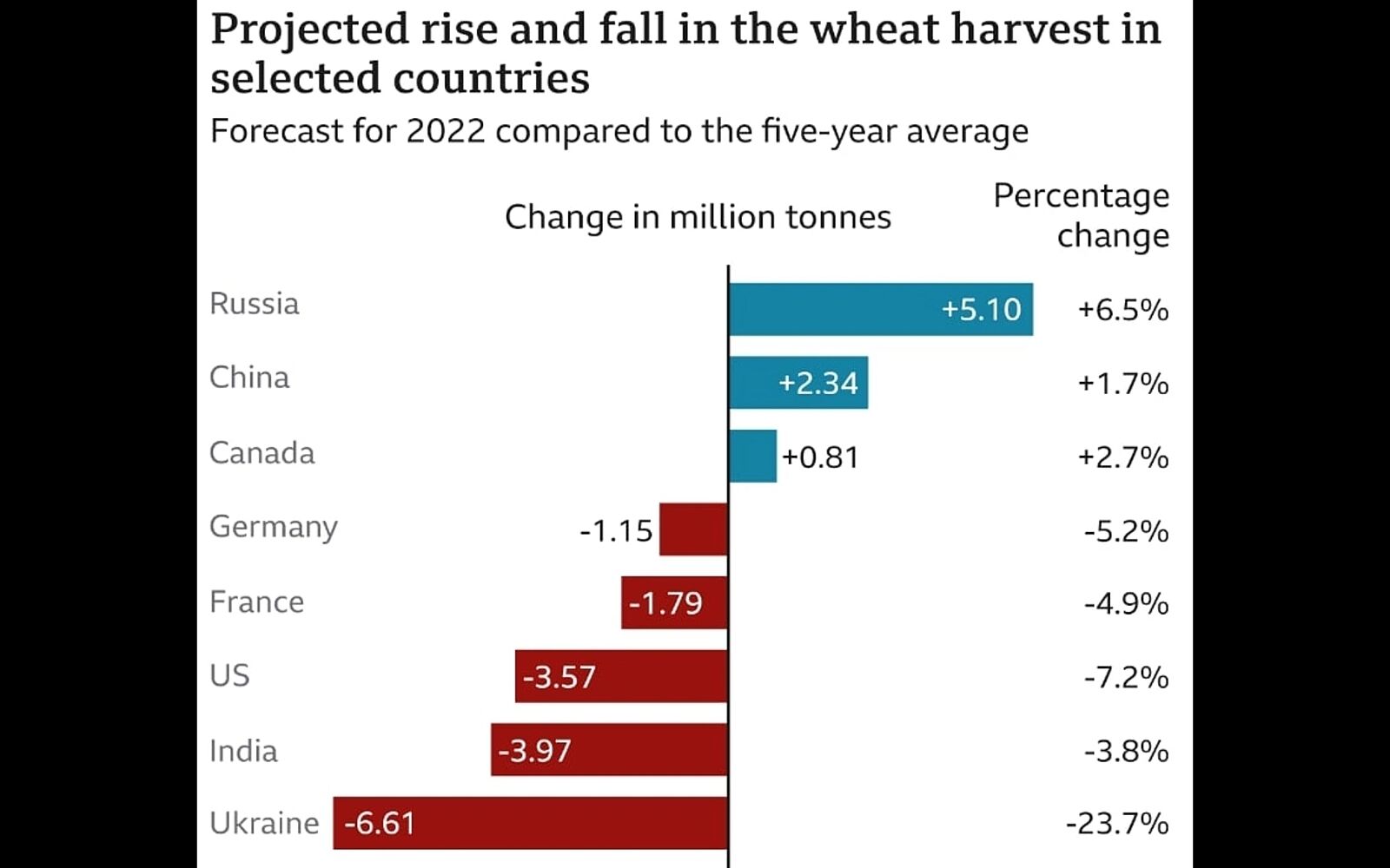 А ну-ка девочки сложим-ка 2+2 для полной картины...сколько неубраного зерна и прочего добра останется на оккупированной территории? Прям по Библии сценарии развивается...кровавые воды уже увидела когда дельфины погибали, бедные животные, теперь это
