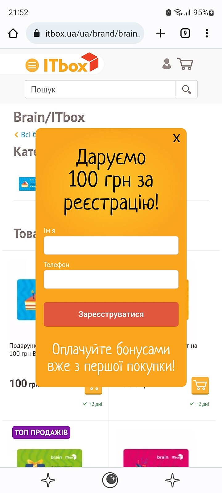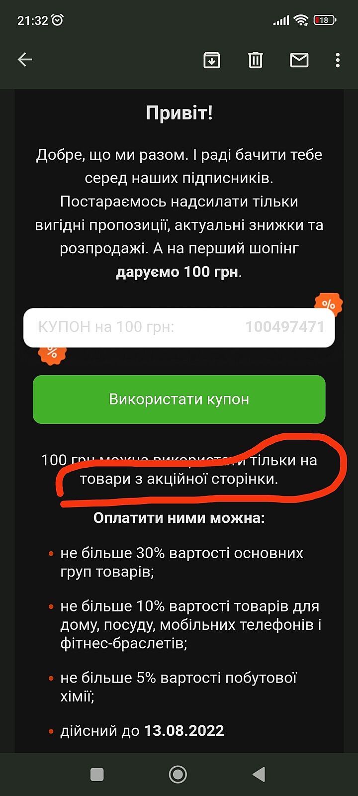 Дякую за підказку, вже спробувала, але ці 100 грн лише на товари з певного переліку... Нема потрібного мені на жаль